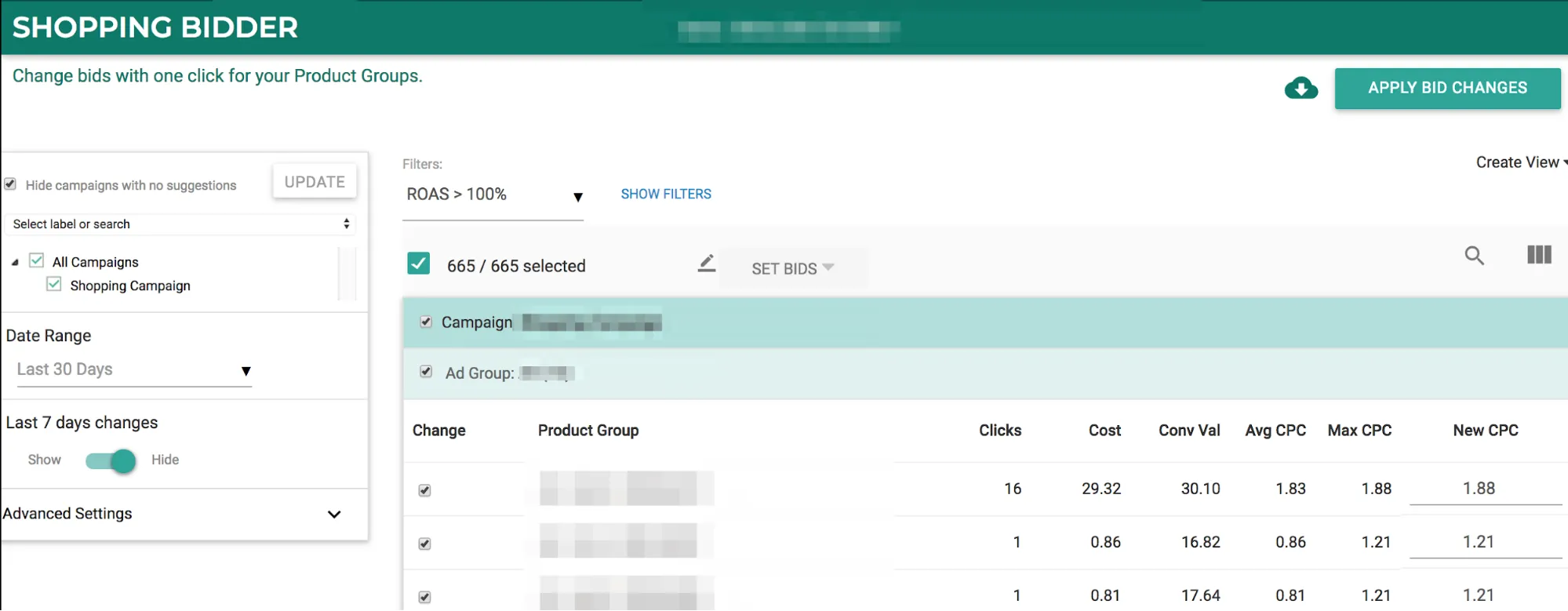 One of these tools is the Shopping Bidder. With the Shopping Bidder, you can make rather standard and bulk modifications for bids based on performance. These bid changes can only be applied to product groups, and work by increasing or decreasing the current bid by a number or percentage.